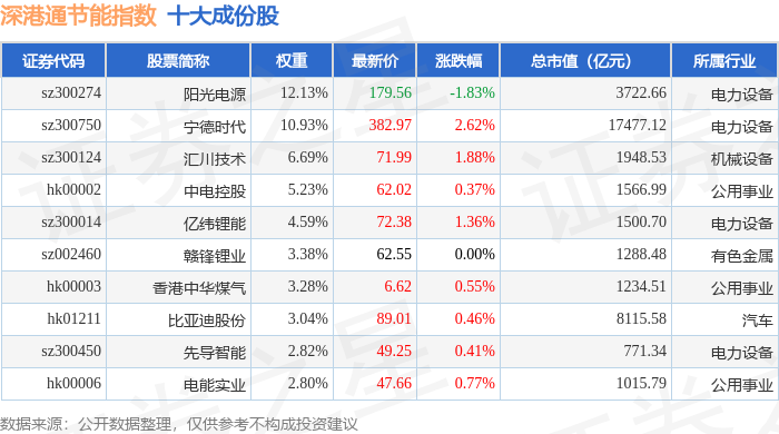 深港通节能(983085)指数十大成份股详情如下: