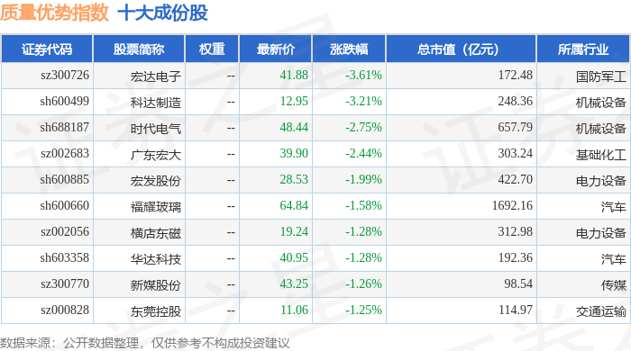 质量优势(989017)指数十大成份股详情如下: