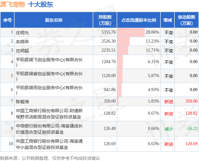 根据源飞宠物2025年三季报公布的十大股东详情如下: