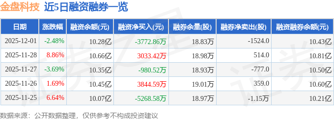 金盘科技融资融券信息显示,融资方面,当日融资买入2.24亿元,融资偿还2.62亿元,融资净偿还3772.86万元。融券方面,融券卖出4853.0股,融券偿还6377.0股,融券余量18.83万股,融券余额1502.98万元。融资融券余额10.43亿元。