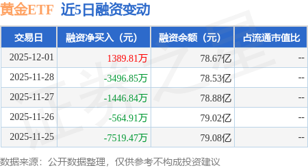 证券之星消息,12月1日,黄金ETF(518880)融资买入6.22亿元,融资偿还6.08亿元,融资净买入1389.81万元,融资余额78.67亿元。