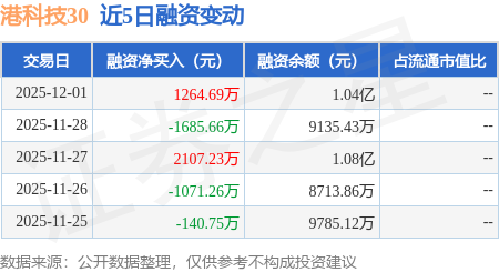 证券之星消息,12月1日,港科技30(159636)融资买入6559.99万元,融资偿还5295.31万元,融资净买入1264.69万元,融资余额1.04亿元。