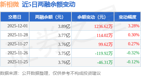 证券之星消息,12月1日,新相微(688593)融资买入3523.46万元,融资偿还2286.4万元,融资净买入1237.06万元,融资余额3.89亿元,近3个交易日已连续净买入累计1452.26万元。