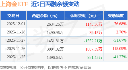证券之星消息,12月1日,上海金ETF(518600)融资买入7458.09万元,融资偿还6314.8万元,融资净买入1143.3万元,融资余额2634.26万元,近20个交易日中有11个交易日出现融资净买入。