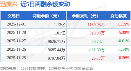 证券之星消息,12月1日,迅捷兴(688655)融资买入2025.64万元,融资偿还894.72万元,融资净买入1130.93万元,融资余额1.13亿元。