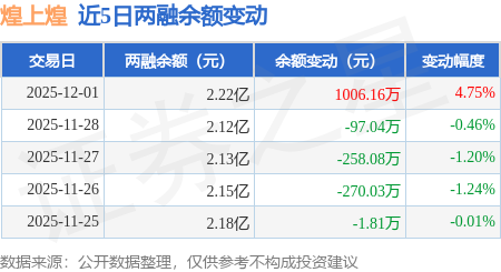 证券之星消息,12月1日,煌上煌(002695)融资买入2212.05万元,融资偿还1203.79万元,融资净买入1008.26万元,融资余额2.21亿元。