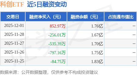 证券之星消息,12月1日,科创ETF(588050)融资买入2147.74万元,融资偿还1294.77万元,融资净买入852.97万元,融资余额1.76亿元,近20个交易日中有11个交易日出现融资净买入。