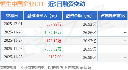 证券之星消息,12月1日,恒生中国企业ETF(510900)融资买入2220.16万元,融资偿还1662.17万元,融资净买入557.99万元,融资余额26.92亿元。