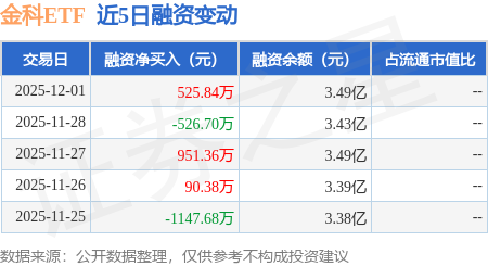 证券之星消息,12月1日,金科ETF(159851)融资买入2698.66万元,融资偿还2172.82万元,融资净买入525.84万元,融资余额3.49亿元,近20个交易日中有11个交易日出现融资净买入。