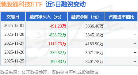 证券之星消息,12月1日,港股通科技ETF(513860)融资买入1473.62万元,融资偿还982.4万元,融资净买入491.23万元,融资余额3836.4万元。