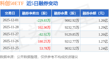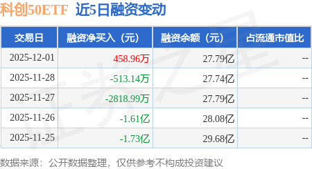 证券之星消息,12月1日,科创50ETF(588000)融资买入4.37亿元,融资偿还4.32亿元,融资净买入458.96万元,融资余额27.79亿元。