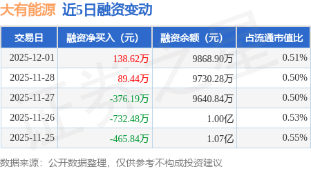 证券之星消息,12月1日,大有能源(600403)融资买入2535.65万元,融资偿还2397.03万元,融资净买入138.62万元,融资余额9868.9万元。