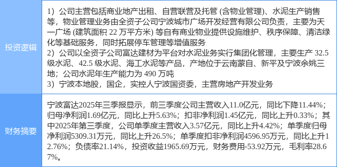 该股为环杭州湾大湾区,水泥,物业管理概念热股,当日环杭州湾大湾区概念上涨0.74%,水泥概念上涨0.38%,物业管理概念上涨0.3%。