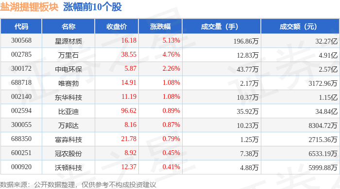 从资金流向上来看,当日盐湖提锂板块主力资金净流出11.85亿元,游资资金净流出2.51亿元,散户资金净流入14.36亿元。盐湖提锂板块个股资金流向见下表: