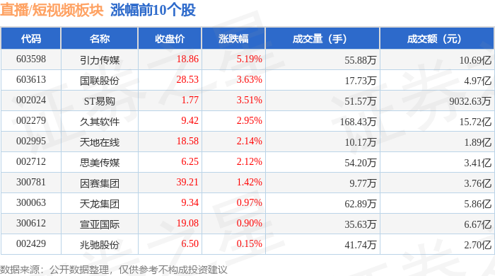 从资金流向上来看,当日直播/短视频板块主力资金净流出8.1亿元,游资资金净流入1.38亿元,散户资金净流入6.72亿元。直播/短视频板块个股资金流向见下表: