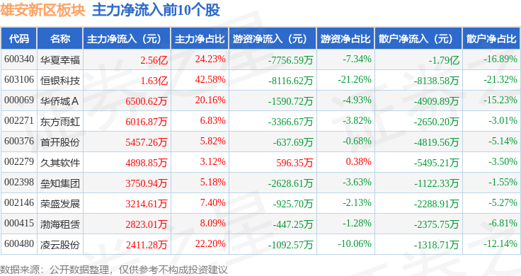 从资金流向上来看,当日雄安新区板块主力资金净流出7.83亿元,游资资金净流出1.07亿元,散户资金净流入8.9亿元。雄安新区板块个股资金流向见下表: