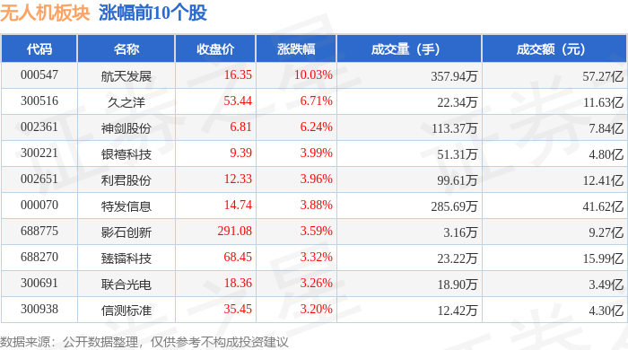 从资金流向上来看,当日无人机板块主力资金净流出9.7亿元,游资资金净流出1.65亿元,散户资金净流入11.35亿元。无人机板块个股资金流向见下表: