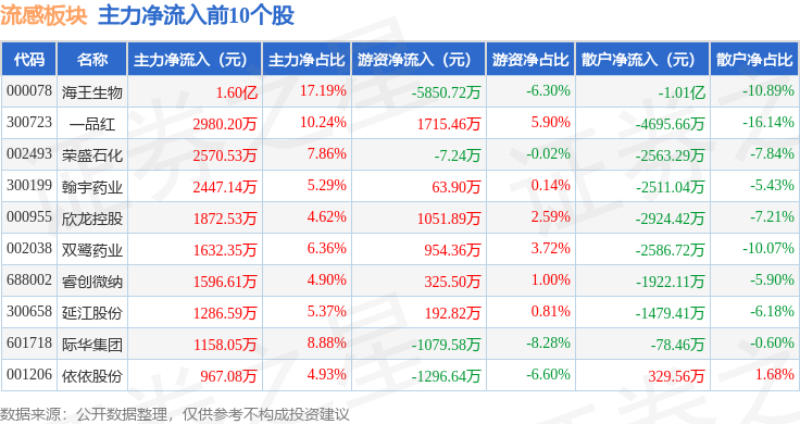 从资金流向上来看,当日流感板块主力资金净流出9.23亿元,游资资金净流入7557.38万元,散户资金净流入8.47亿元。流感板块个股资金流向见下表: