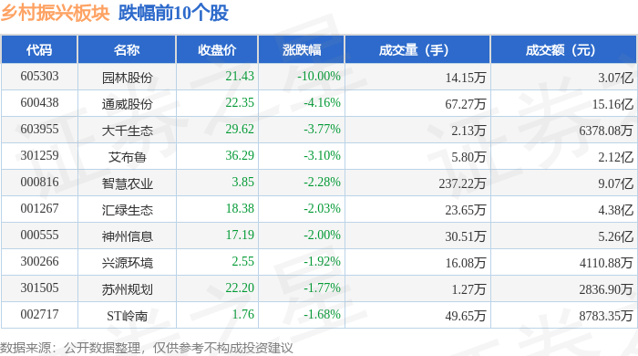 从资金流向上来看,当日乡村振兴板块主力资金净流出2.5亿元,游资资金净流出552.82万元,散户资金净流入2.56亿元。乡村振兴板块个股资金流向见下表: