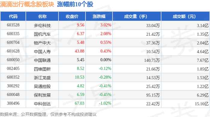 证券之星消息,12月2日滴滴出行概念股板块较上一交易日上涨0.06%,多伦科技领涨。当日上证指数报收于3897.71,下跌0.42%。深证成指报收于13056.7,下跌0.68%。滴滴出行概念股板块个股涨跌见下表:
