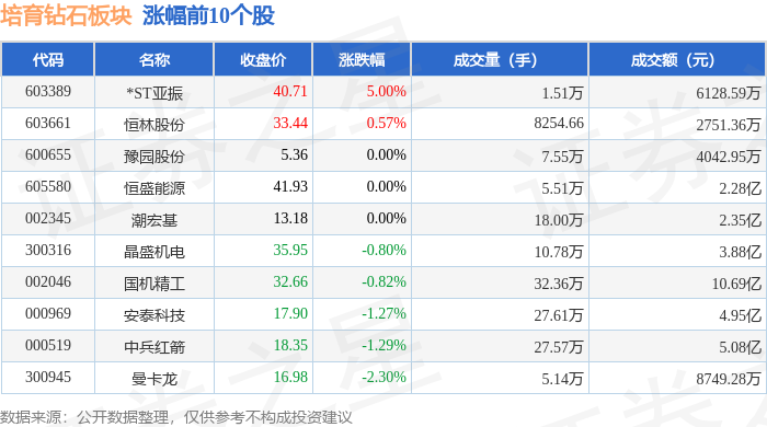 证券之星消息,12月2日培育钻石板块较上一交易日下跌0.86%,沃尔德领跌。当日上证指数报收于3897.71,下跌0.42%。深证成指报收于13056.7,下跌0.68%。培育钻石板块个股涨跌见下表: