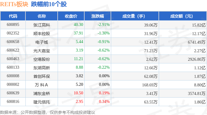 证券之星消息,12月2日REITs板块较上一交易日下跌0.48%,张江高科领跌。当日上证指数报收于3897.71,下跌0.42%。深证成指报收于13056.7,下跌0.68%。REITs板块个股涨跌见下表: