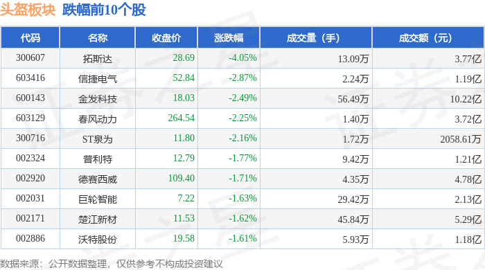 证券之星消息,12月2日头盔板块较上一交易日下跌0.96%,拓斯达领跌。当日上证指数报收于3897.71,下跌0.42%。深证成指报收于13056.7,下跌0.68%。头盔板块个股涨跌见下表: