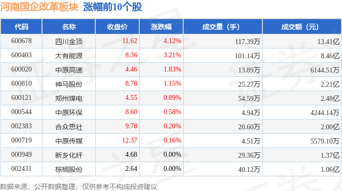 从资金流向上来看,当日河南国企改革板块主力资金净流出1.01亿元,游资资金净流入3194.99万元,散户资金净流入6864.44万元。河南国企改革板块个股资金流向见下表: