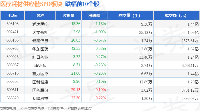 证券之星消息,12月2日医疗耗材供应链SPD板块较上一交易日上涨0.63%,开开实业领涨。当日上证指数报收于3897.71,下跌0.42%。深证成指报收于13056.7,下跌0.68%。医疗耗材供应链SPD板块个股涨跌见下表:
