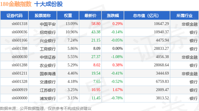 180金融(000018)指数十大成份股详情如下:
