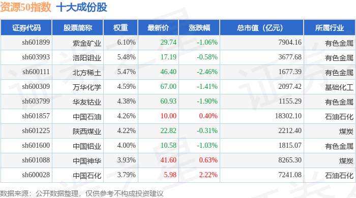 证券之星消息,12月2日,资源50(000092)指数报收于4551.11点,跌0.67%,成交422.67亿元,换手率0.44%。当日该指数成份股中,上涨的有11家,彤程新材以6.31%的涨幅领涨,下跌的有38家,盛和资源以2.66%的跌幅领跌。