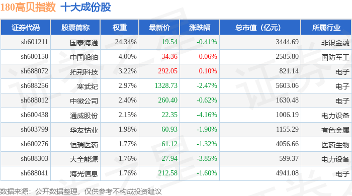 180高贝(000135)指数十大成份股详情如下: