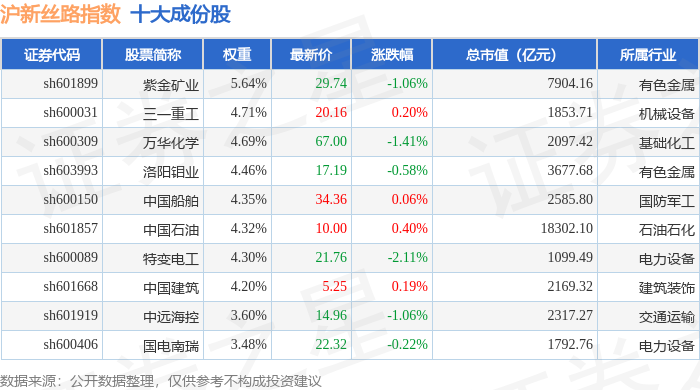 证券之星消息,12月2日,沪新丝路(000160)指数报收于2044.98点,跌0.65%,成交438.41亿元,换手率0.52%。当日该指数成份股中,上涨的有21家,中国石化以2.22%的涨幅领涨,下跌的有43家,招商轮船以9.94%的跌幅领跌。