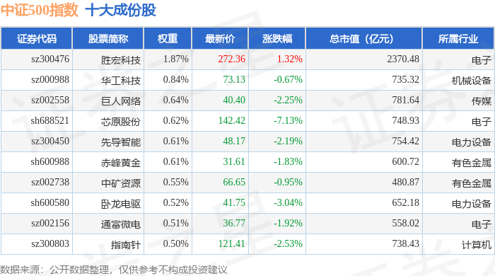 中证500(000905)指数十大成份股详情如下: