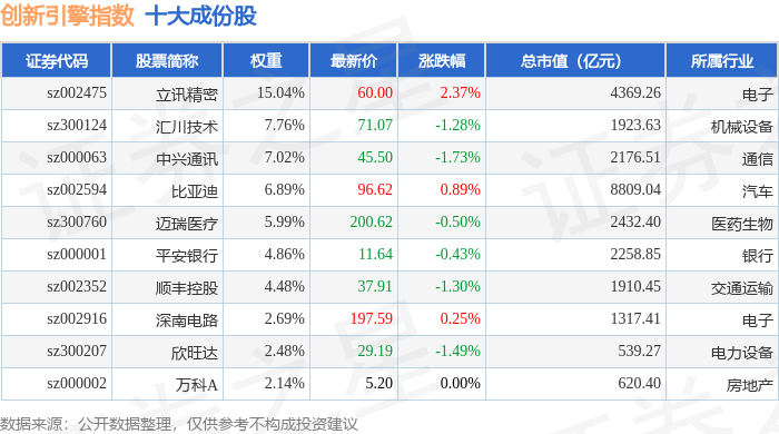 创新引擎(399050)指数十大成份股详情如下: