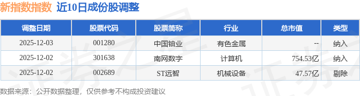 近10日内新指数(399100)成份股做了调整,新纳入了2只股票,剔除了1只股票。
