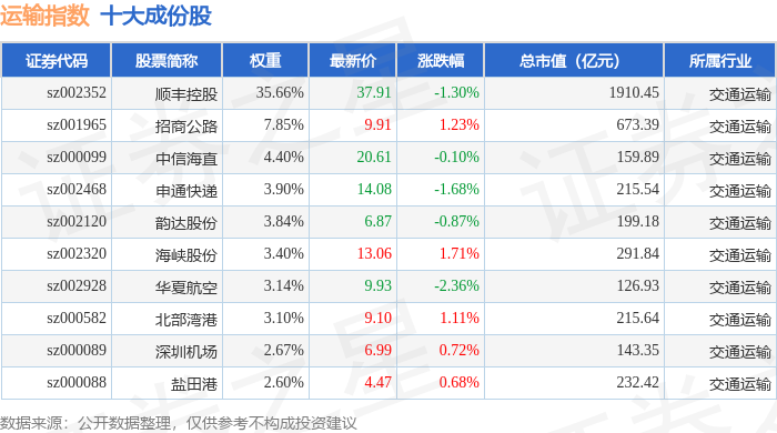 资金流向方面,运输指数(399237)成份股当日主力资金净流出合计1.69亿元,游资资金净流出合计9841.23万元,散户资金净流入合计2.68亿元。成份股资金流向详情见下表: