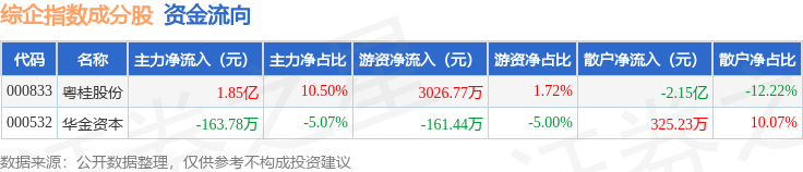 资金流向方面,综企指数(399249)成份股当日主力资金净流入合计1.83亿元,游资资金净流入合计2865.32万元,散户资金净流出合计2.12亿元。成份股资金流向详情见下表: