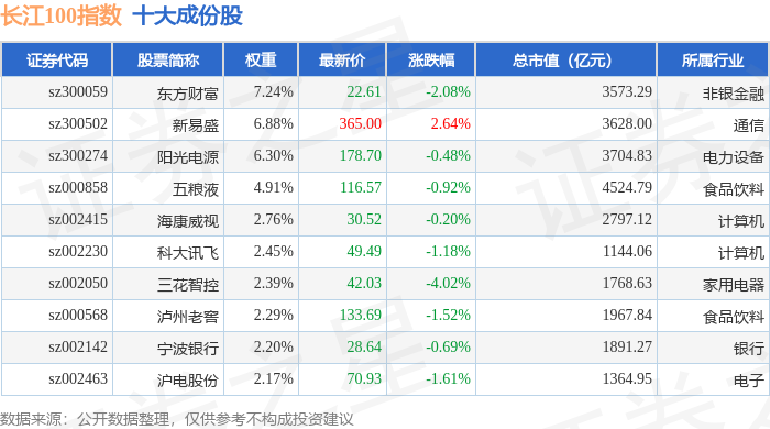证券之星消息,12月2日,长江100(399278)指数报收于2045.65点,跌0.76%,成交1054.08亿元,换手率1.16%。当日该指数成份股中,上涨的有20家,迈为股份以4.6%的涨幅领涨,下跌的有78家,三花智控以4.02%的跌幅领跌。