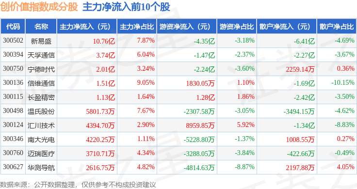 资金流向方面,创价值(399295)指数成份股当日主力资金净流出合计11.67亿元,游资资金净流出合计2747.64万元,散户资金净流入合计11.94亿元。成份股资金流向详情见下表: