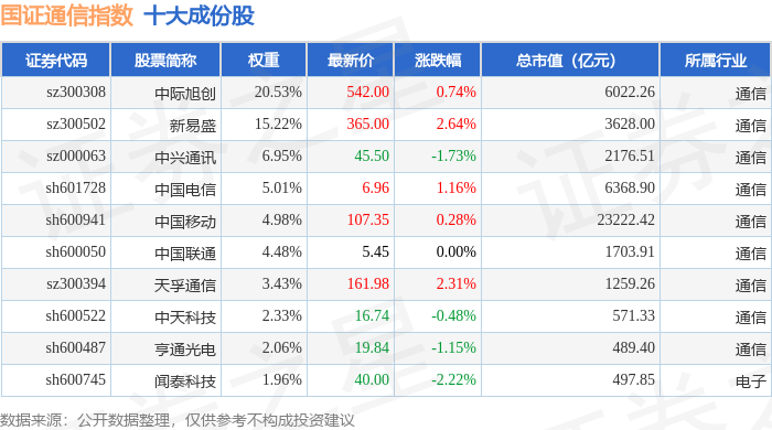 近10日内国证通信(399389)指数成份股做了调整,新纳入了5只股票。