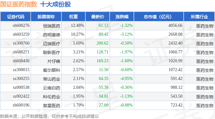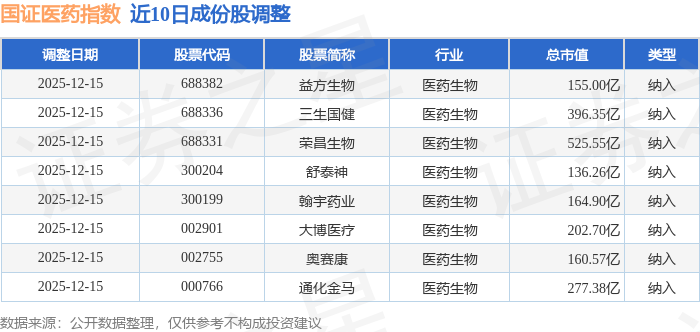 近10日内国证医药(399394)指数成份股做了调整,新纳入了8只股票。
