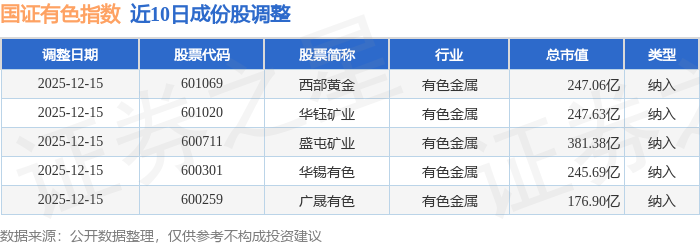近10日内国证有色(399395)指数成份股做了调整,新纳入了5只股票。