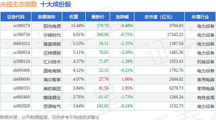 近10日内央视生态(399556)指数成份股做了调整,新纳入了8只股票。