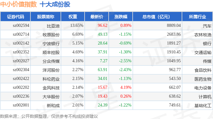 证券之星消息,12月2日,中小价值(399604)指数报收于1968.91点,跌0.61%,成交364.21亿元,换手率1.0%。当日该指数成份股中,上涨的有30家,金风科技以4.19%的涨幅领涨,下跌的有65家,森马服饰以6.29%的跌幅领跌。