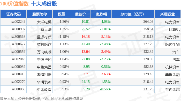证券之星消息,12月2日,700价值(399629)指数报收于2841.02点,跌0.53%,成交429.05亿元,换手率1.55%。当日该指数成份股中,上涨的有81家,星源材质以5.13%的涨幅领涨,下跌的有138家,森马服饰以6.29%的跌幅领跌。