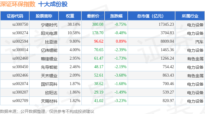 深证环保(399638)指数十大成份股详情如下: