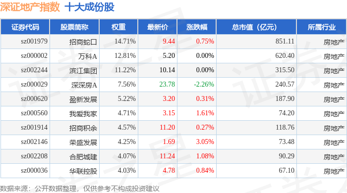 深证地产(399637)指数十大成份股详情如下: