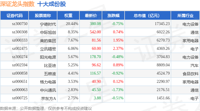 深证龙头(399653)指数十大成份股详情如下: