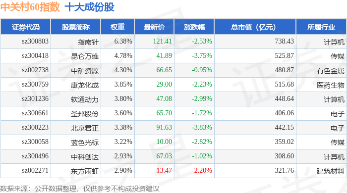 资金流向方面,中关村60(399697)指数成份股当日主力资金净流出合计30.12亿元,游资资金净流入合计9.18亿元,散户资金净流入合计20.94亿元。成份股资金流向详情见下表: